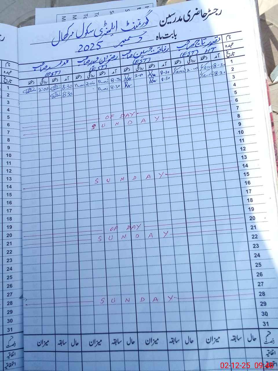 | CNIC | Full Name | Designation | R/C | Absence During Last Calender Month |
