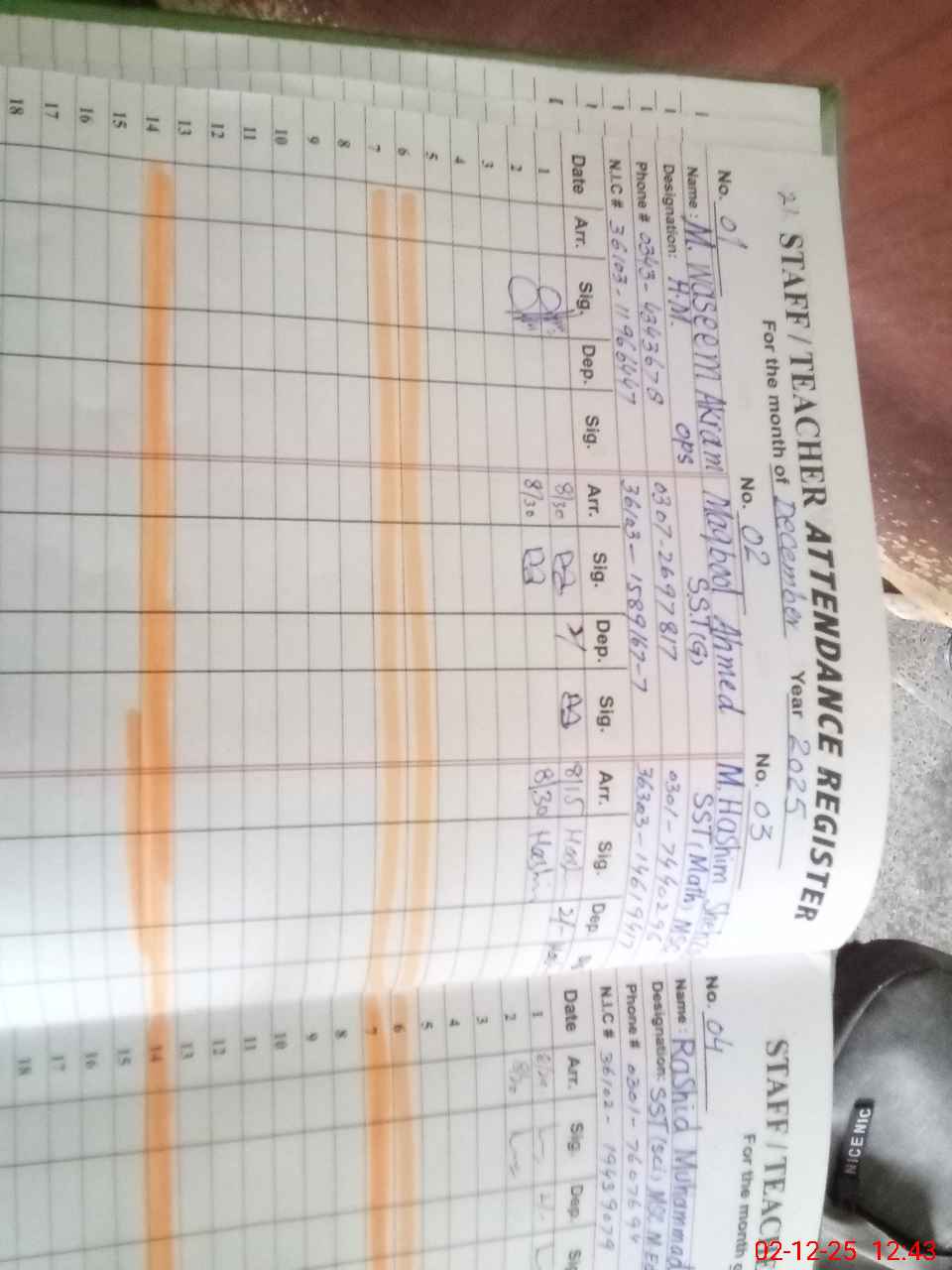 | CNIC | Full Name | Designation | R/C | Absence during last cal. month |