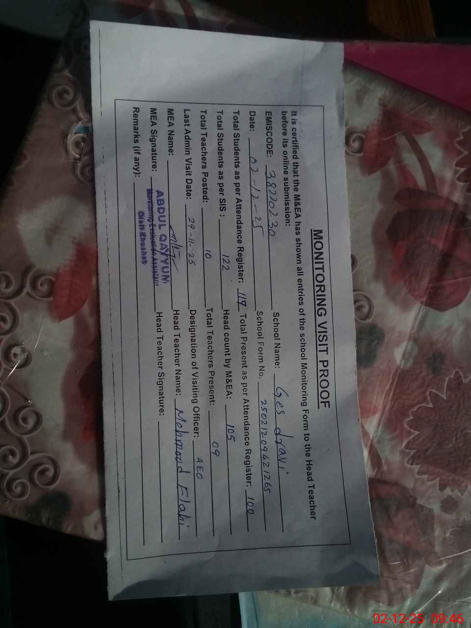 | EMIS Code: 38220230 | Name of School: GES DRAVI | |||