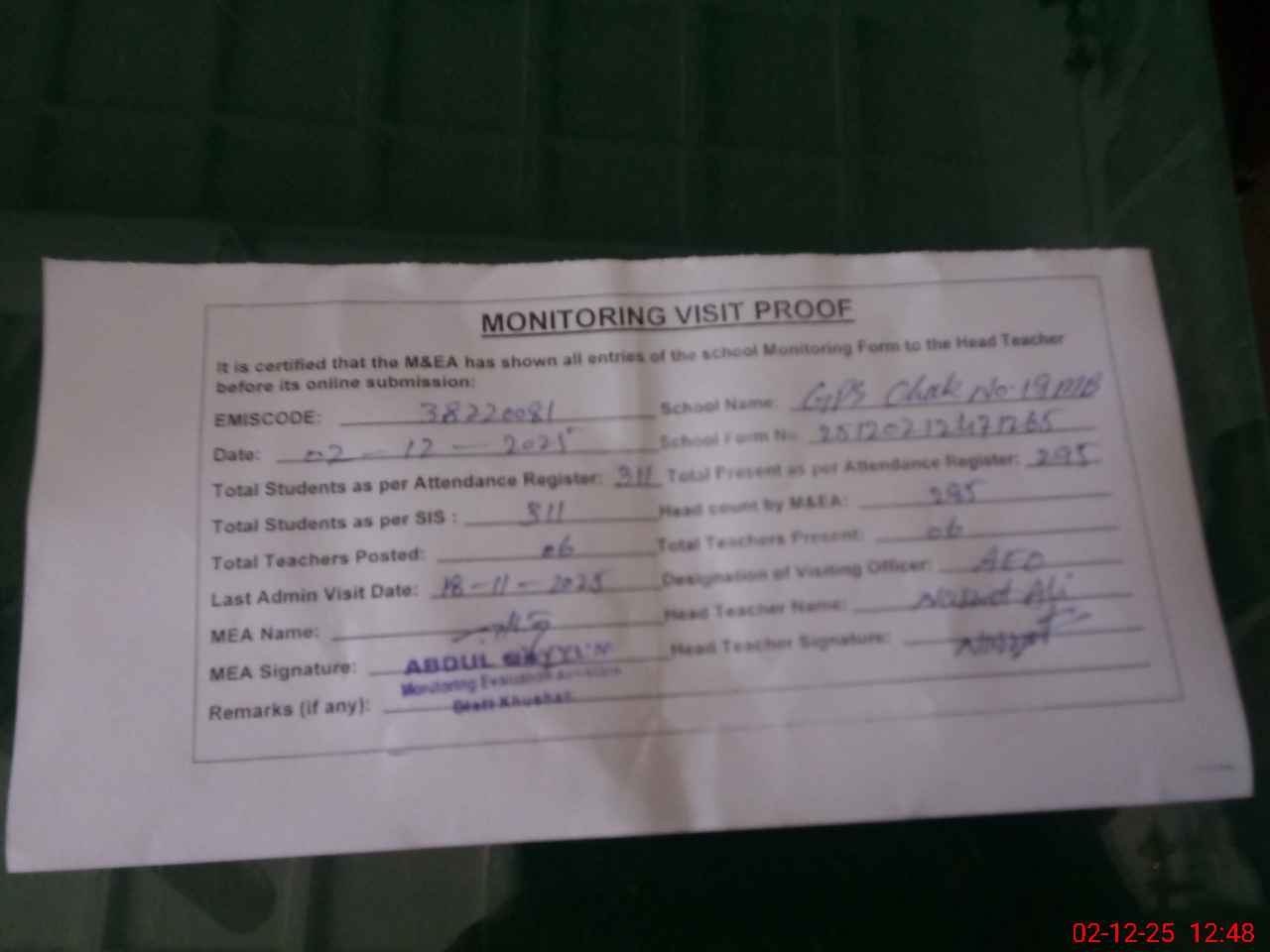 | EMIS Code: 38220081 | Name of School: GPS CHAK NO. 19 MB | |||