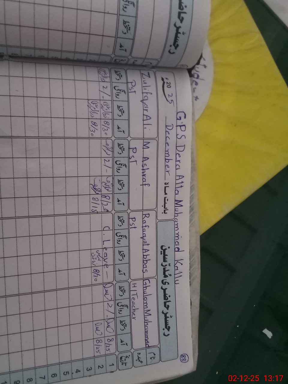 | CNIC | Full Name | Designation | R/C | Absence during last cal. month |