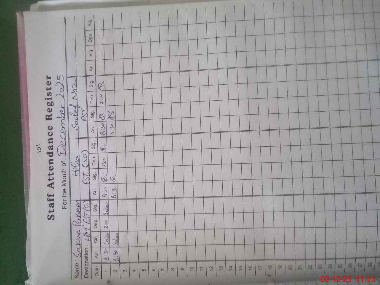 | CNIC | Full Name | Designation | R/C | Absence During Last Calender Month |