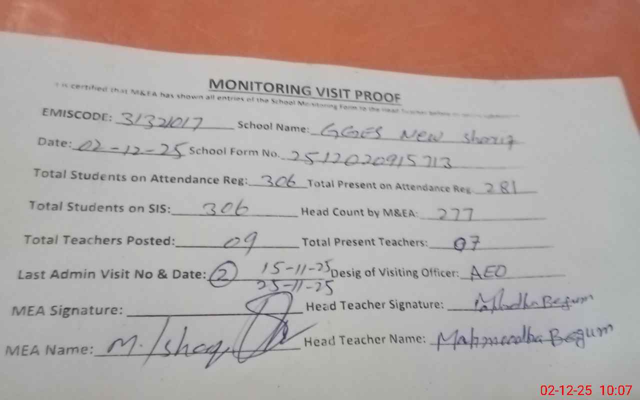 | Attendance Register | Head Teacher | MEA with School | Visit Proof |