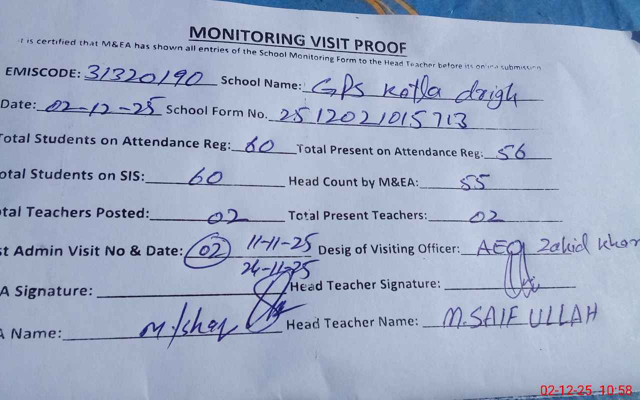 | EMIS Code: 31320190 | Name of School: GPS KOTLA DRIGH | |||