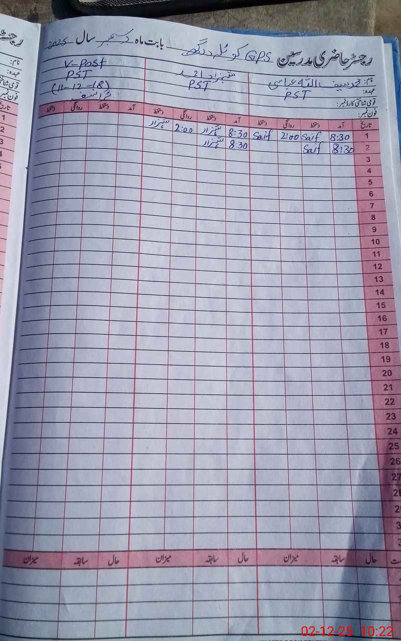 | Name: MU**** SA**** AB**** Designation: (School Headmaster's/Headmistress's) PST Phone/Cell Number: 03**** |