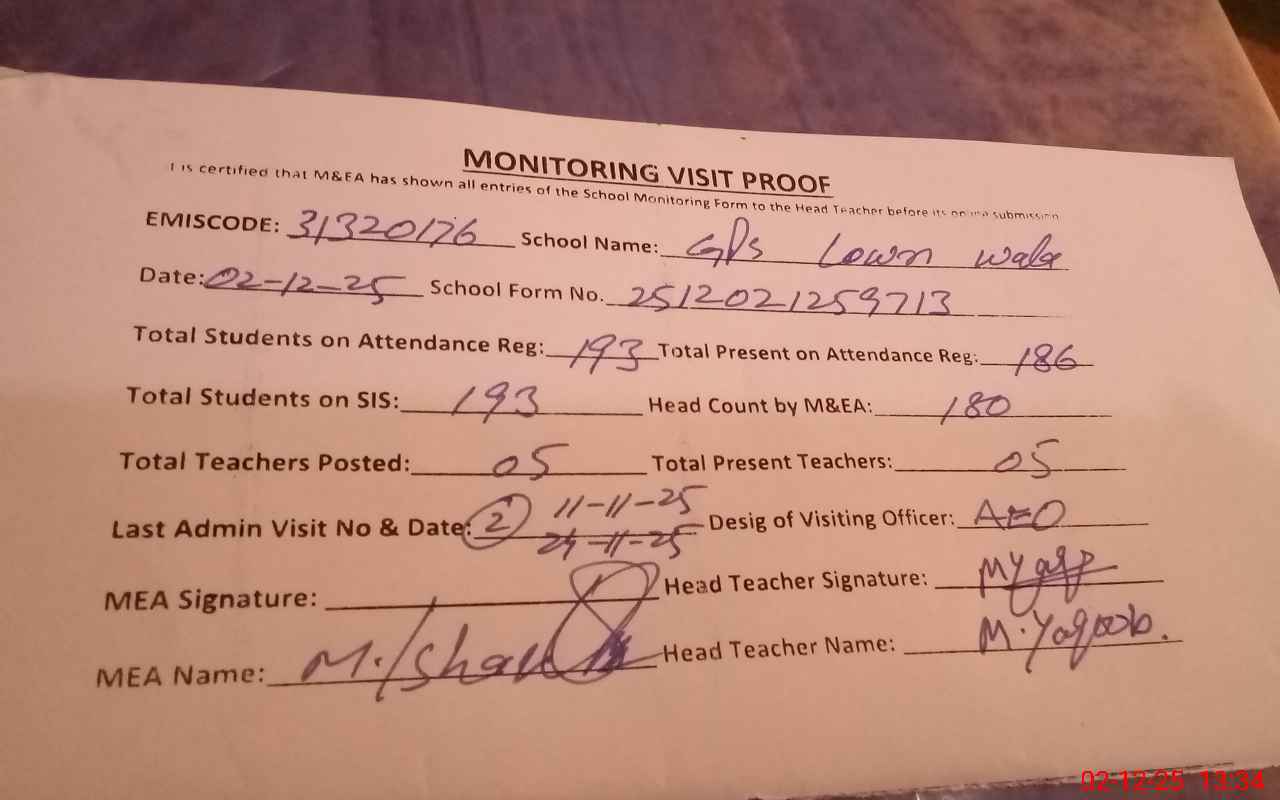 | Attendance Register | Head Teacher | MEA with School | Visit Proof |