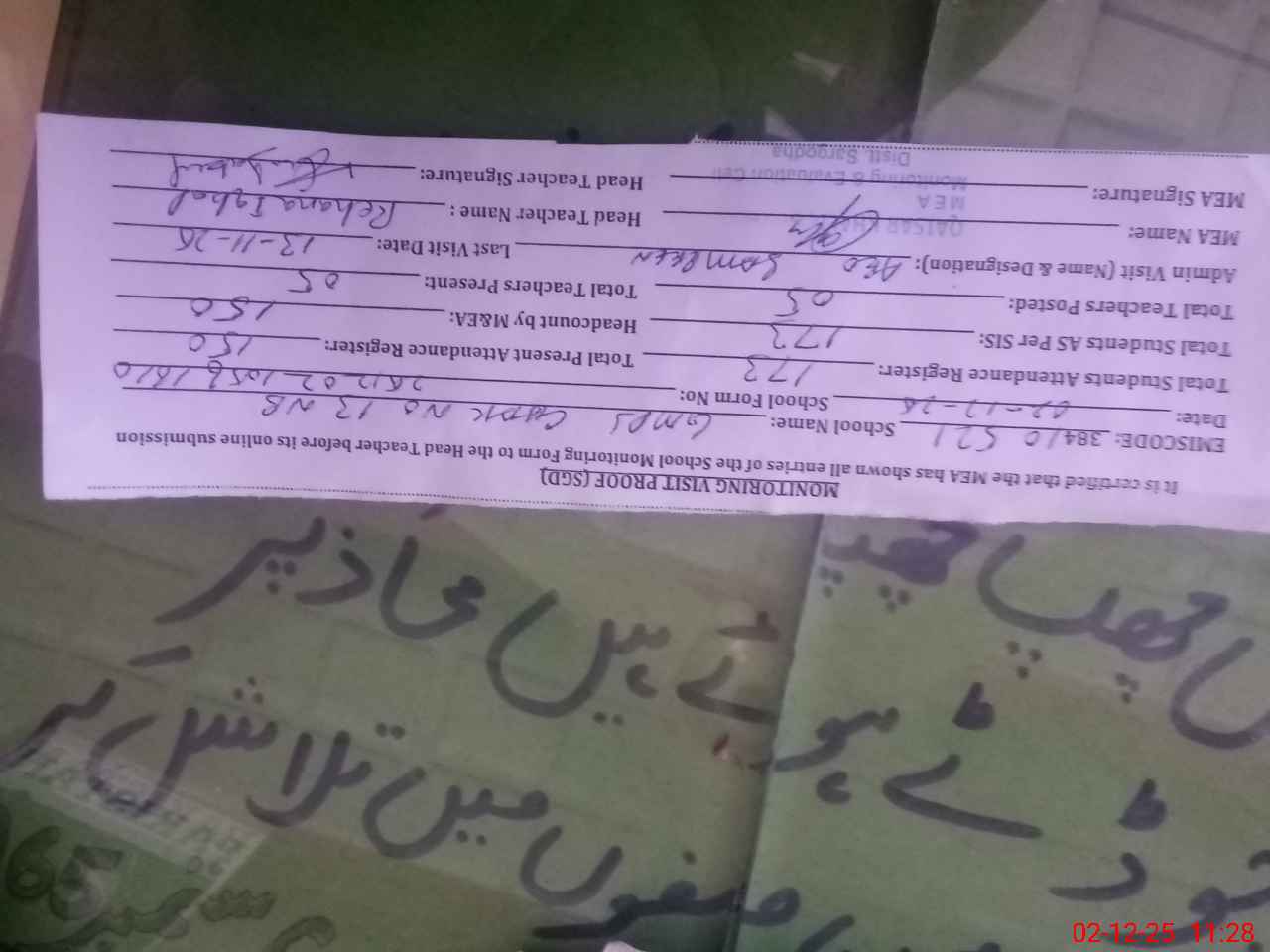 | Certified that this School was Inspected by the Undersigned MEA/DMO Today and the Information Stated Above is as Per Record. | |||||