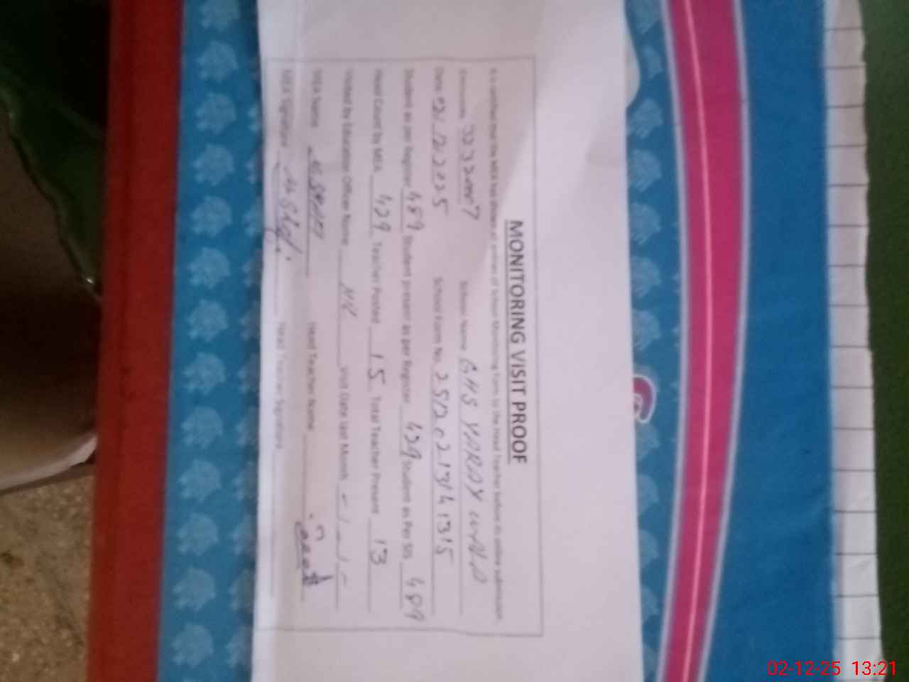 | EMIS Code: 32320007 | Name of School: GHS YARAY WALA | |||