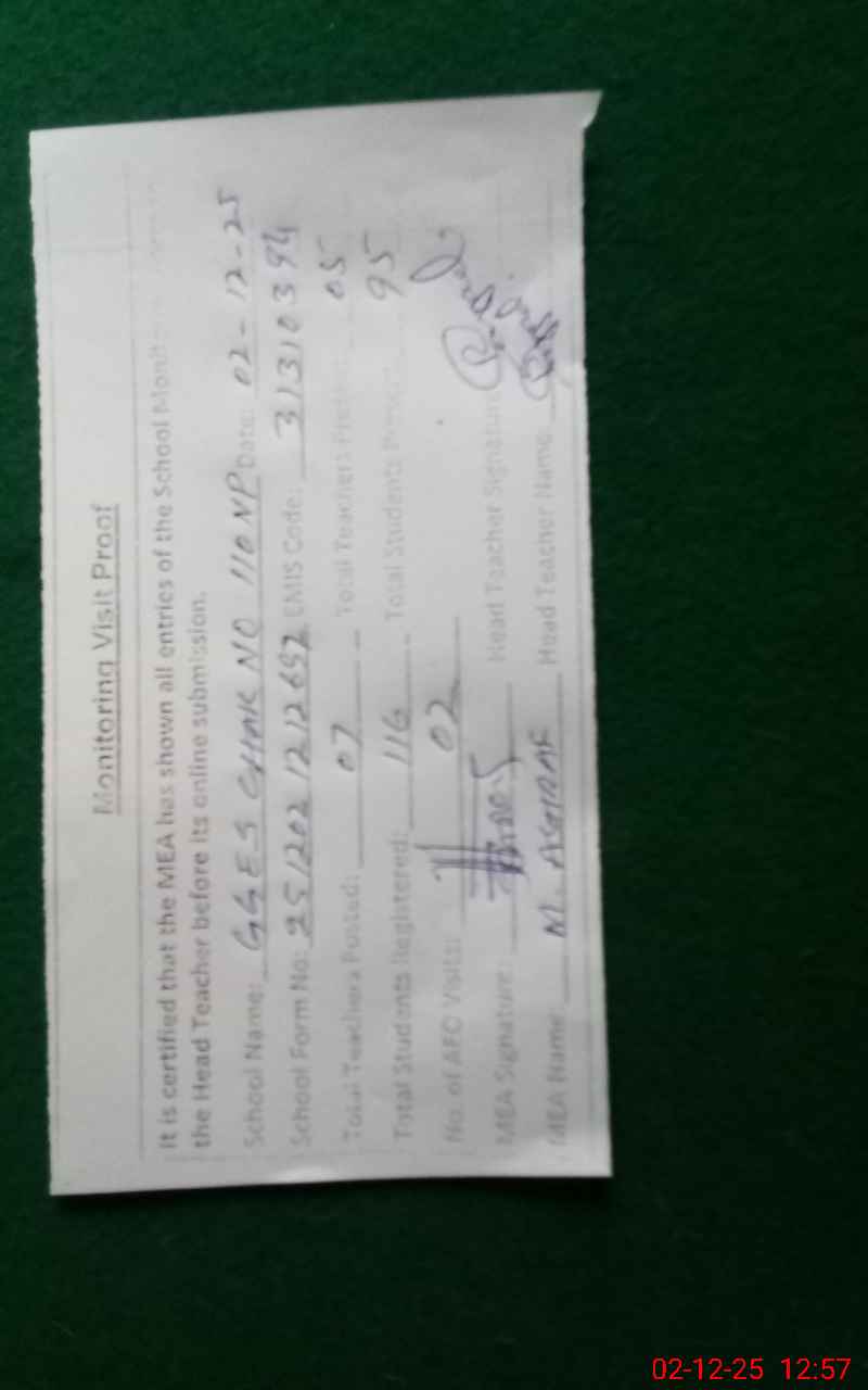 | Remarks (Use Separate Page if Required): ENROLLMENT TAKEN FROM ATTENDENCE REGISTERS OF STUDENTS ATTENDENCE OF STUDENTS CARRIED OUT BY HEAD COUNT NSB CASH REGISTER NOT MAINTAINED SINCE JUNE, 2025 | |||||