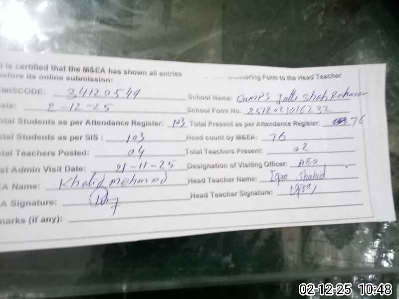 | EMIS Code: 34120549 | Name of School: GMPS JATTI SHAH REHMAN | |||