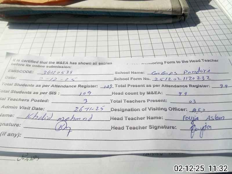 | EMIS Code: 34120539 | Name of School: GGPS PANDORI KHURD | |||