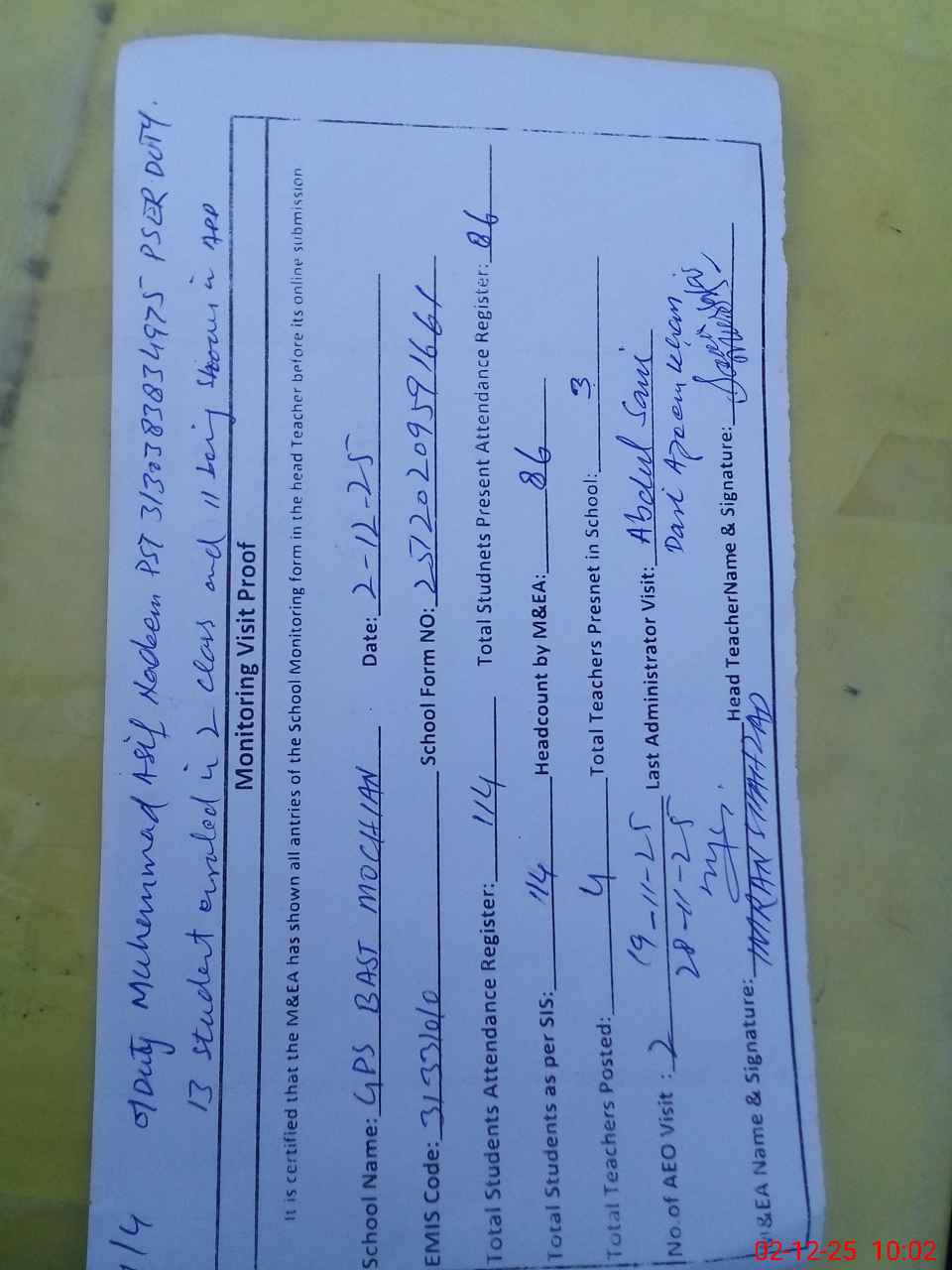 | EMIS Code: 31331010 | Name of School: GPS BASTI MOCHIAN | |||