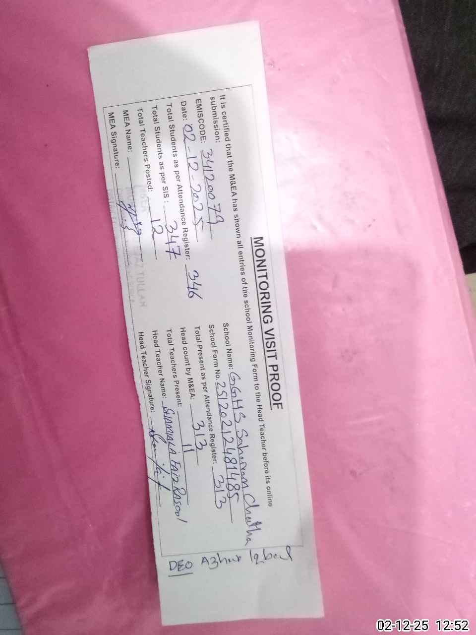 | EMIS Code: 34120079 | Name of School: GGHS SAHARAN CHATHA | |||