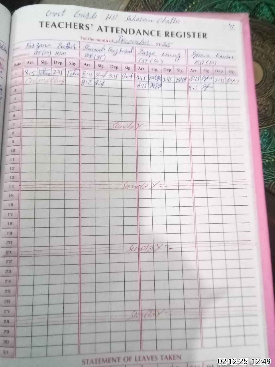 | 11**** | Ej**** Ah**** | SG | 0 | 0 | 0 | 0 | 0 | 0 | 0 | 0 | 0 | Absent (Un-Authorized) | |