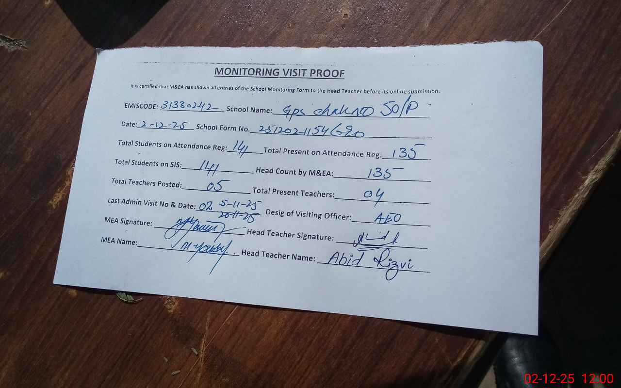 | EMIS Code: 31330242 | Name of School: GPS CHAK 50/P | |||
