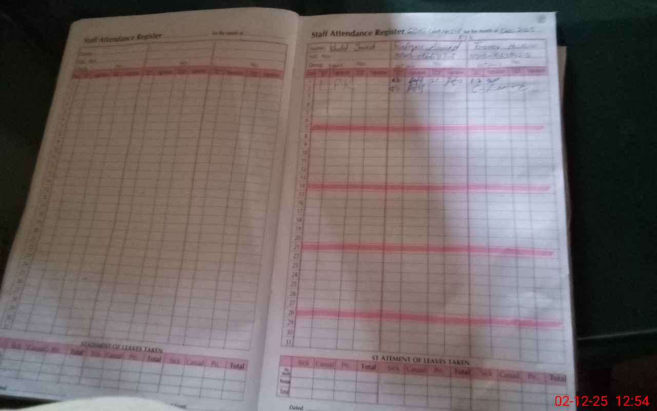 | CNIC | Full Name | Designation | R/C | Absence During Last Calender Month |