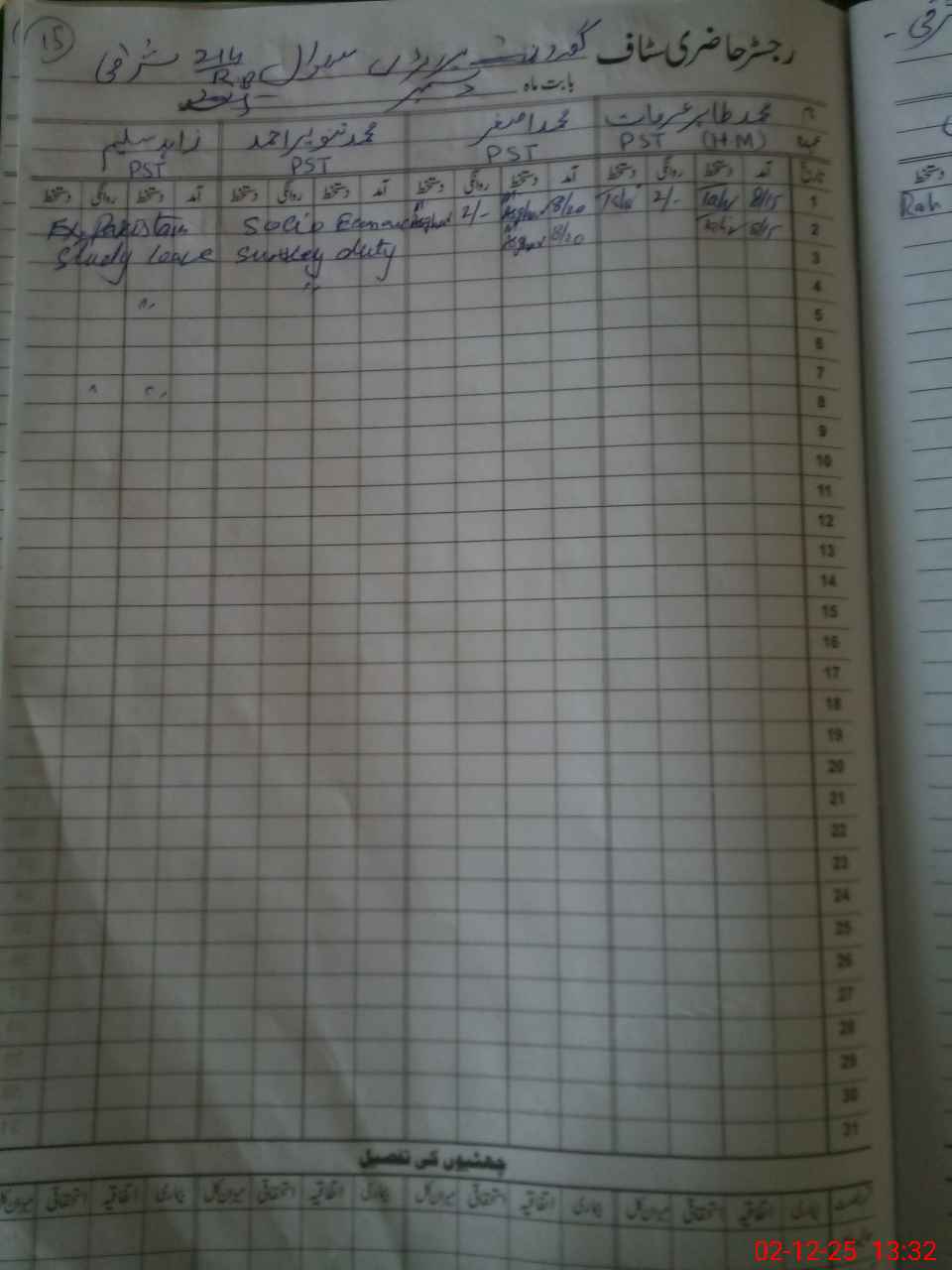 | CNIC | Full Name | Designation | R/C | Absence During Last Calender Month |
