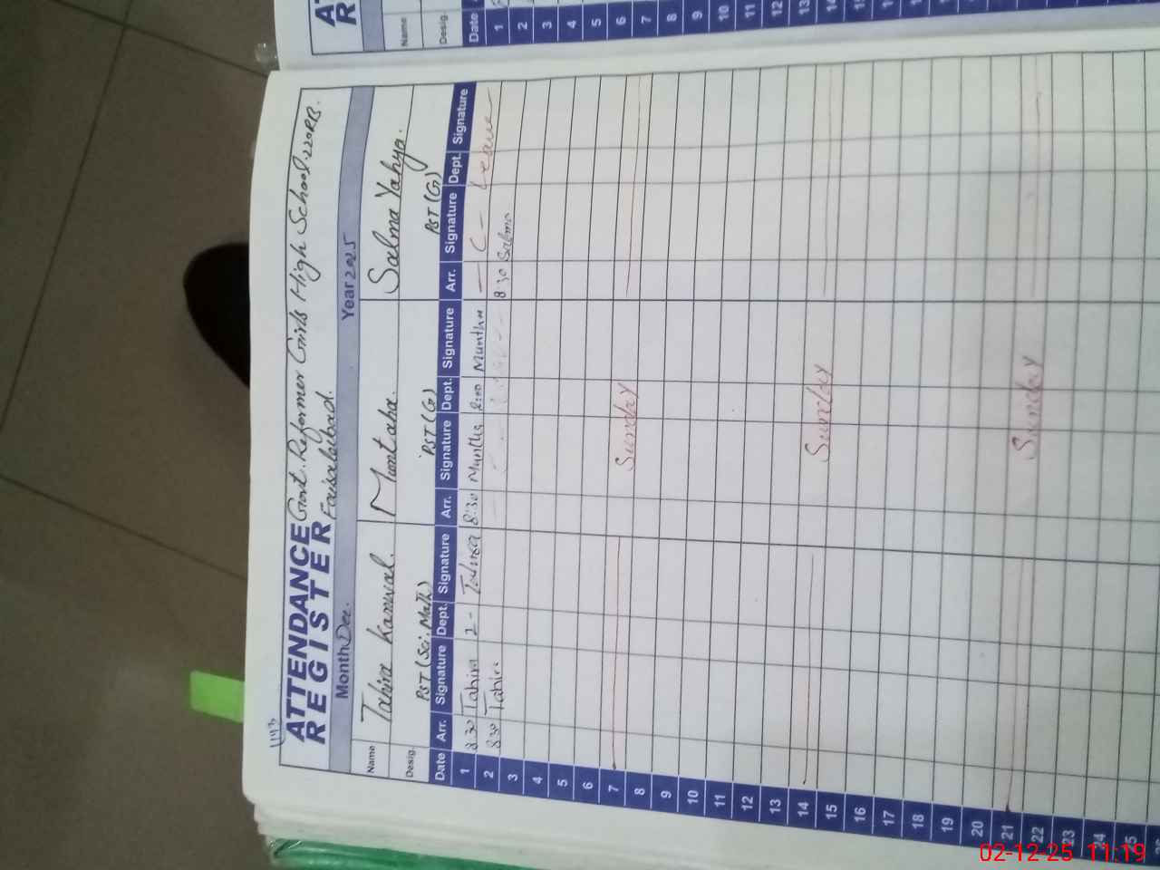 | CNIC | Full Name | Designation | R/C | Absence During Last Calender Month |