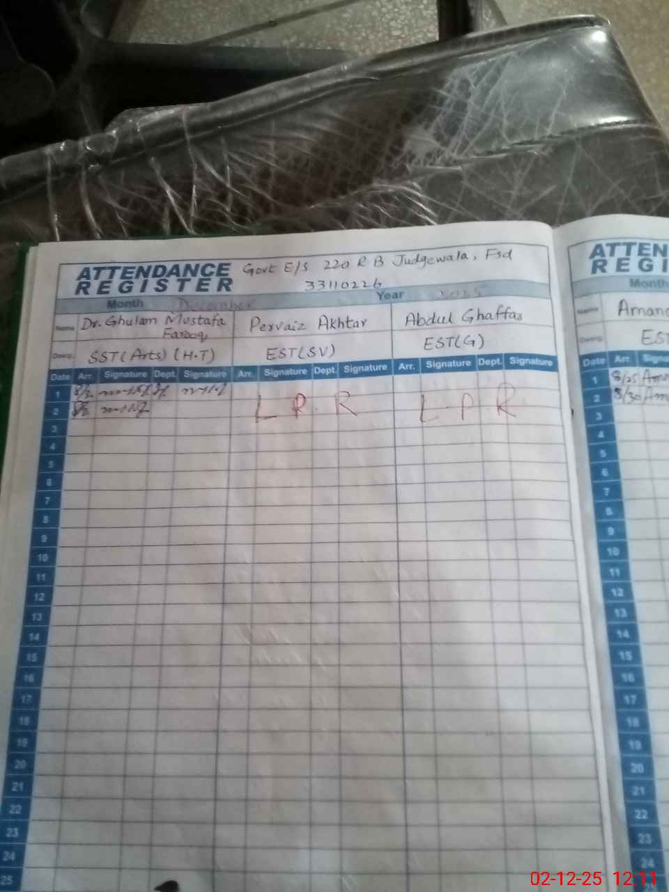 | 33**** | Ad**** Ra**** | N Q | Regular | 0 | 0 | 30 | 0 | 0 | 0 | 0 | 0 | 0 | Absent (Un-Authorized) |