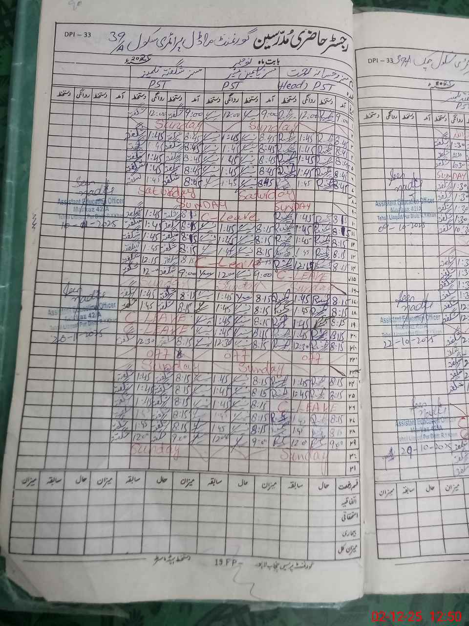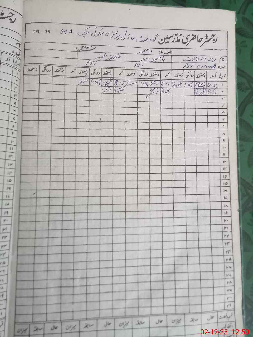 | Name: RU**** RE**** Designation: (School Headmaster's/Headmistress's) PST Phone/Cell Number: 03**** |