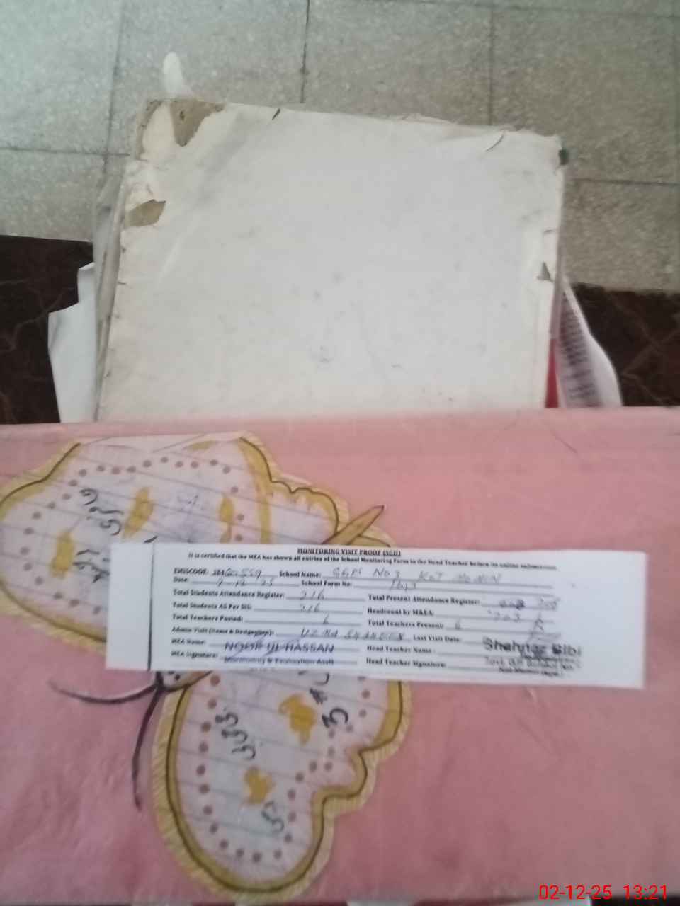 | Attendance Register | Head Teacher | MEA with School | Visit Proof |