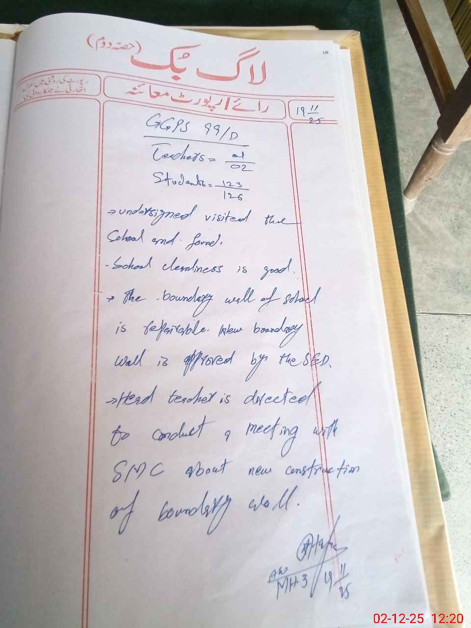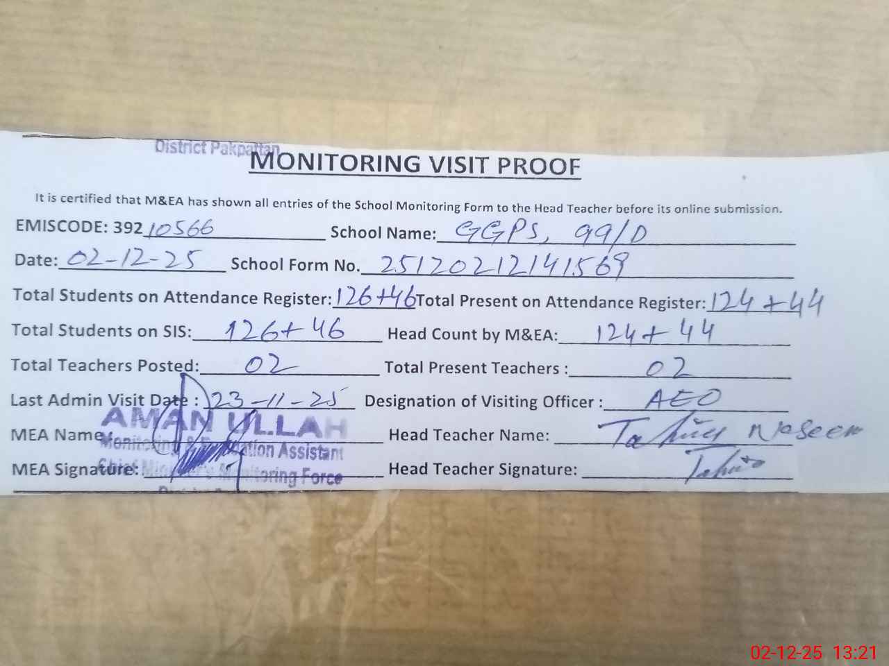 | EMIS Code: 39210566 | Name of School: GGPS 99/D | |||