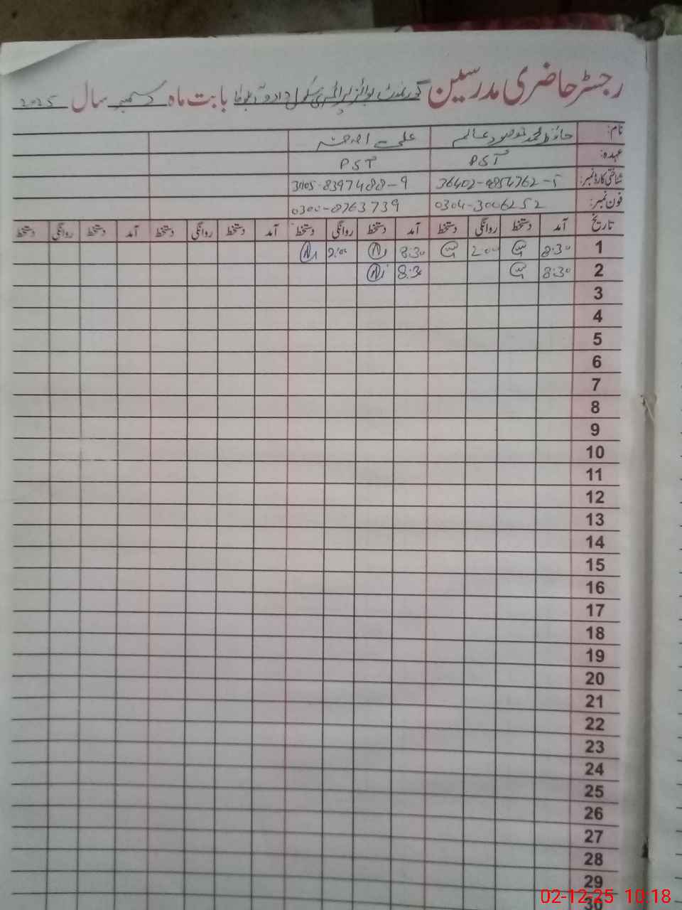 | Name: Ha**** MMa**** Al**** Designation: (School Headmaster's/Headmistress's) PST Phone/Cell Number: 03**** |