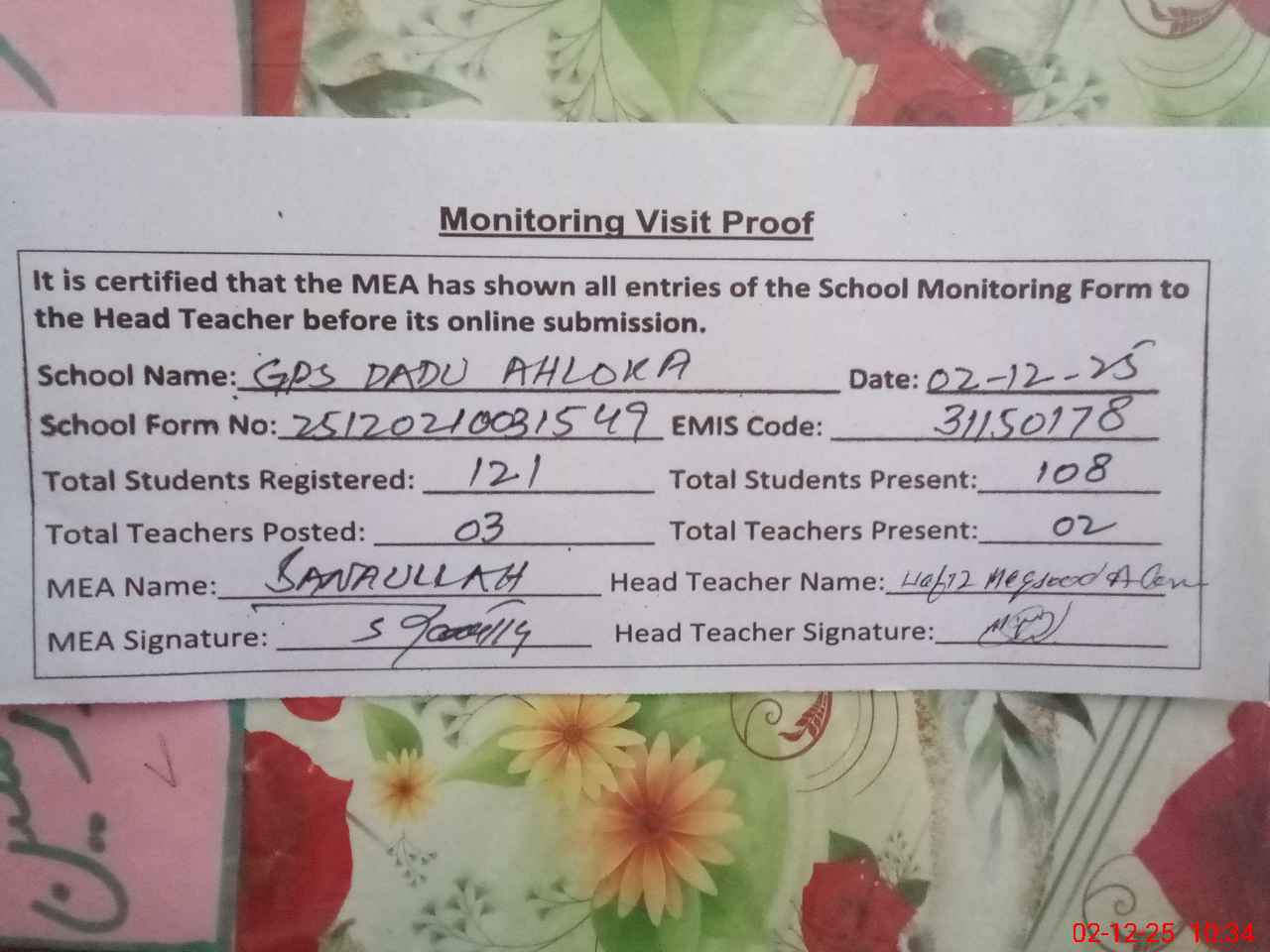 | EMIS Code: 31150178 | Name of School: GPS DADU AHLOKA | |||