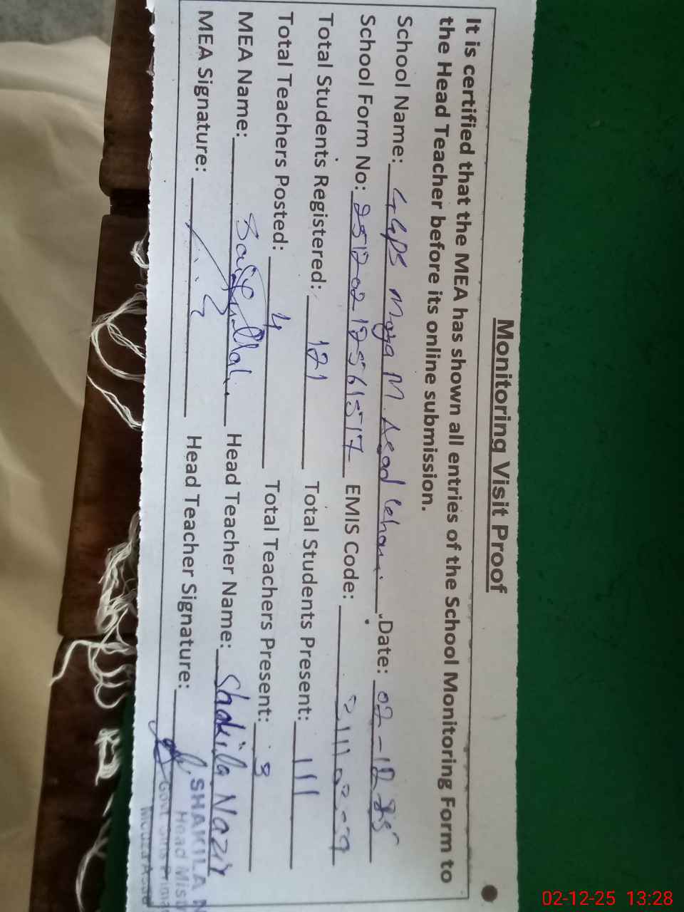 | EMIS Code: 31110359 | Name of School: GGPS MOZA MUHAMMAD ASAD KHAN | |||