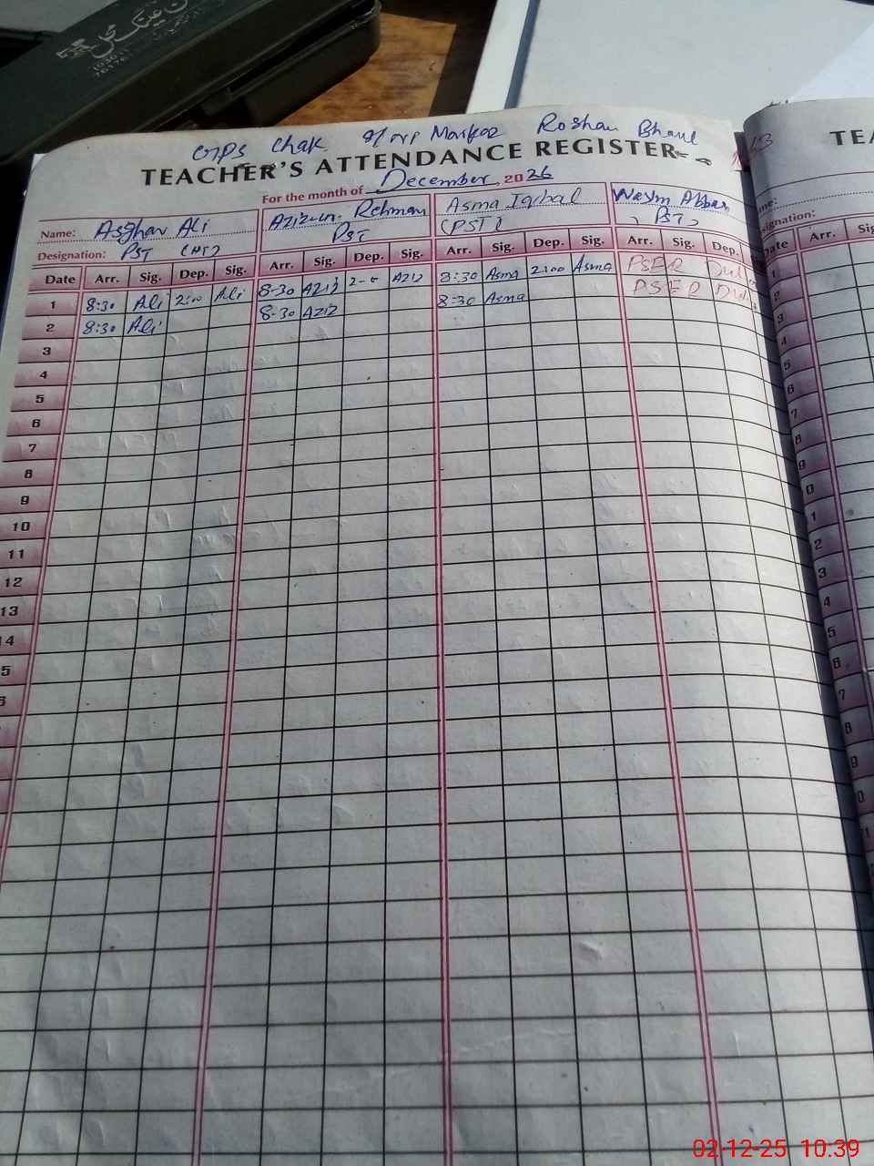 | Name: As**** Al**** Designation: (School Headmaster's/Headmistress's) PST/PTC/JV Phone/Cell Number: 03**** |