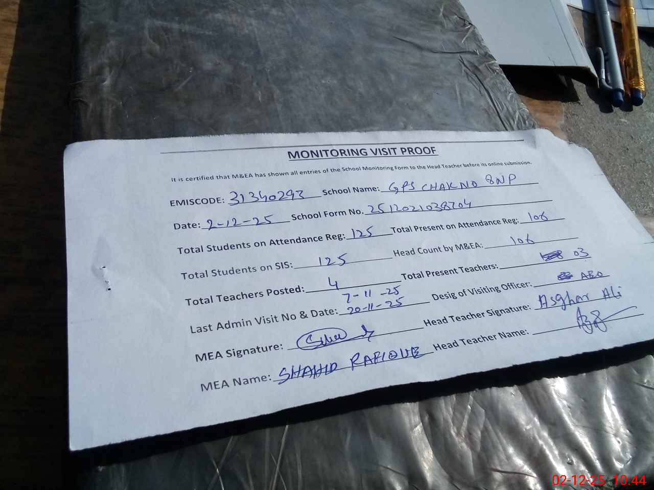 | EMIS Code: 31340293 | Name of School: GPS CHAK NO 8 NP | |||