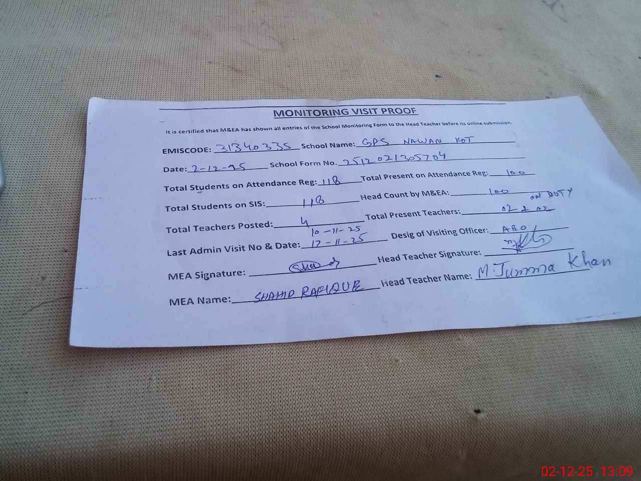 | EMIS Code: 31340335 | Name of School: GPS NAWAN KOT | |||