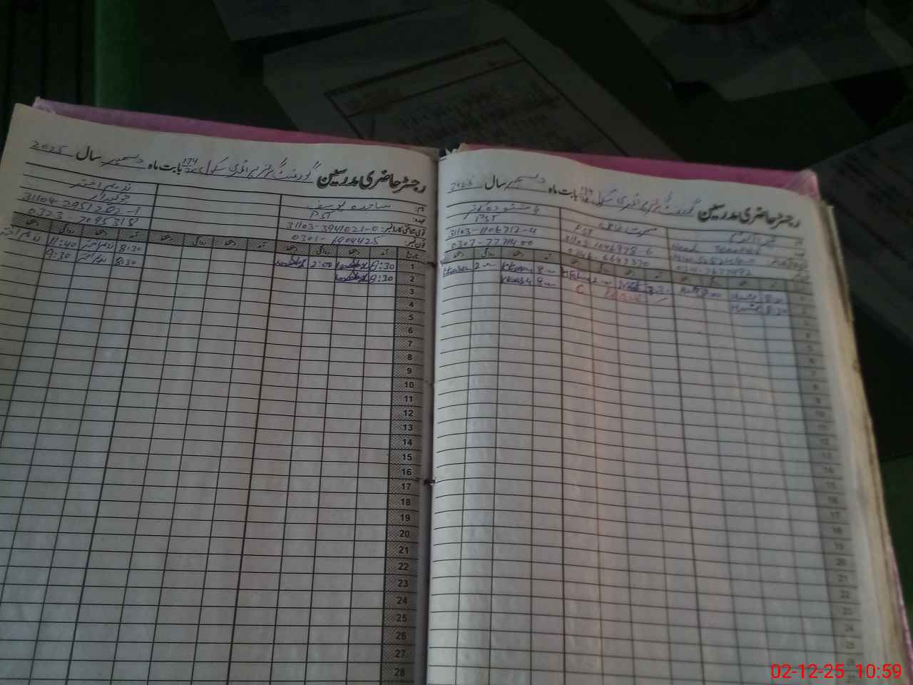 | CNIC | Full Name | Designation | R/C | Absence During Last Calender Month |