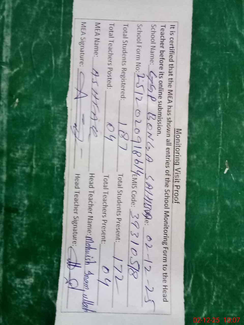 | EMIS Code: 39310518 | Name of School: GGPS BONGA SAHBA | |||