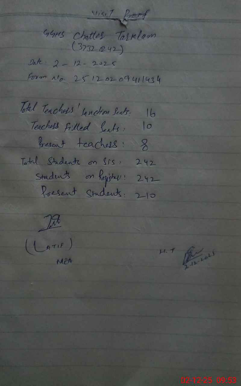 | EMIS Code: 37320242 | Name of School: GGHS CHATTER TARKLAM | |||