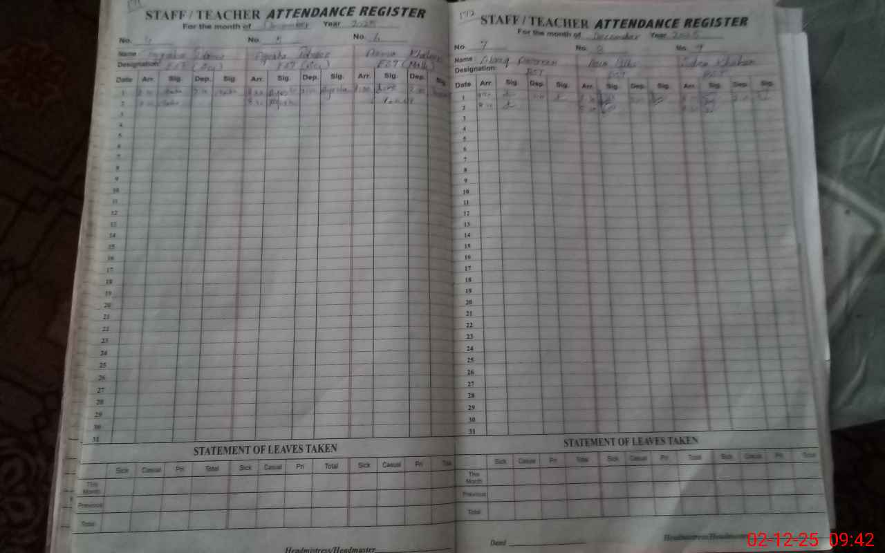 | Attendance Register | Head Teacher | MEA with School | Visit Proof |