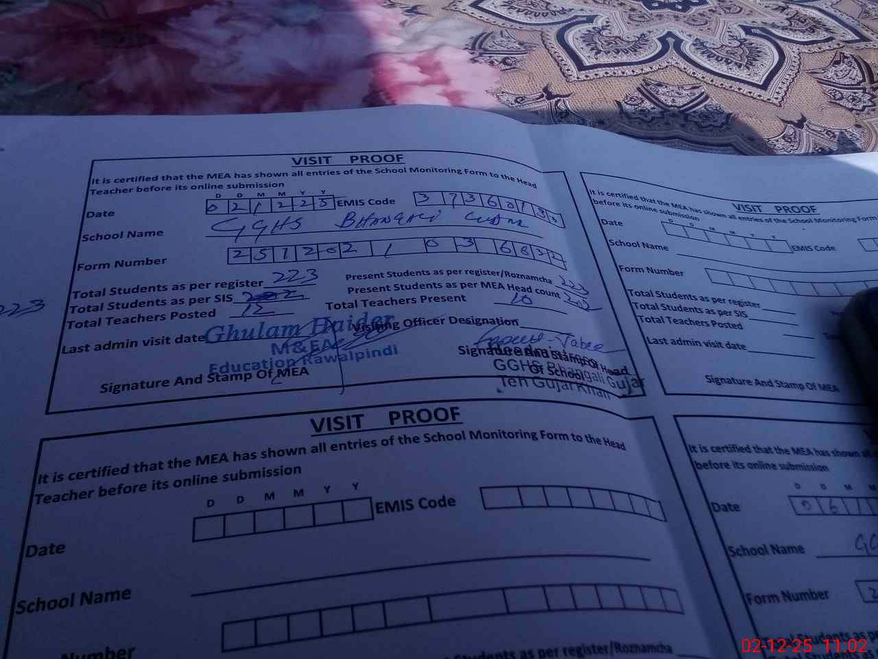 | EMIS Code: 37360130 | Name of School: GGHS BHANGALI GUJAR | |||