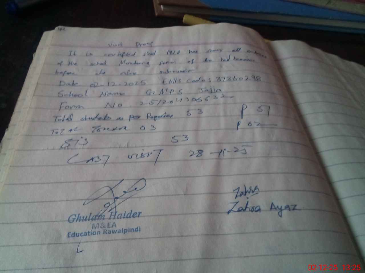 | Attendance Register | Head Teacher | MEA with School | Visit Proof |