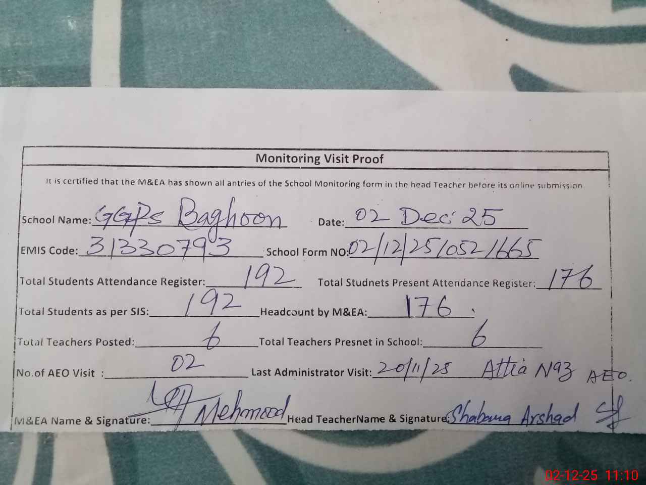 | EMIS Code: 31330793 | Name of School: GGPS BAGHOON | |||