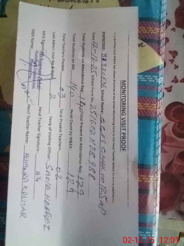 | EMIS Code: 31320636 | Name of School: GGES CHAK 125/NP QADEEM | |||