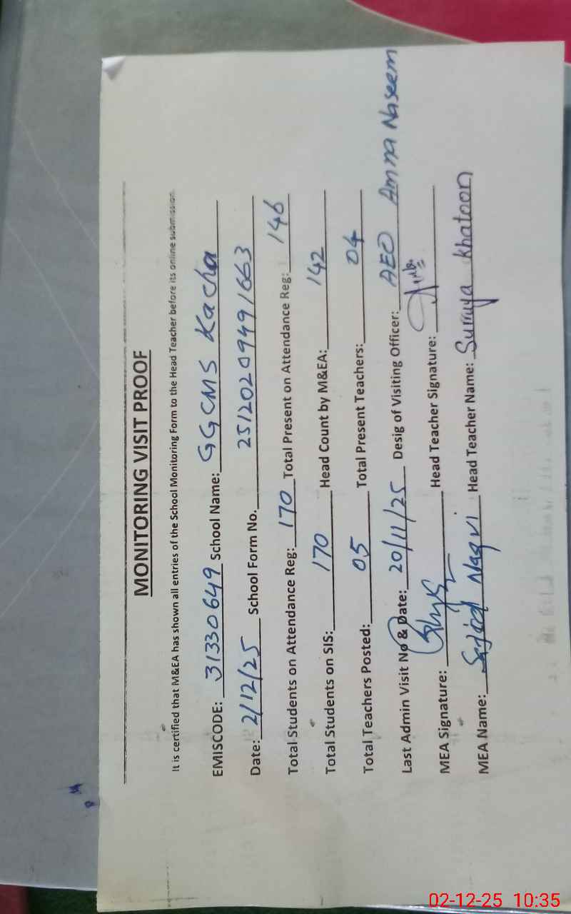 | EMIS Code: 31330649 | Name of School: GGCMS KACHA | |||