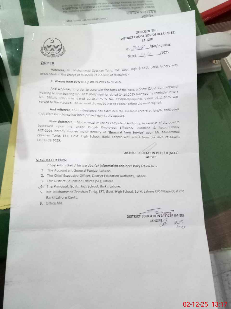 | Certified that this School was Inspected by the Undersigned MEA/DMO Today and the Information Stated Above is as Per Record. | |||||