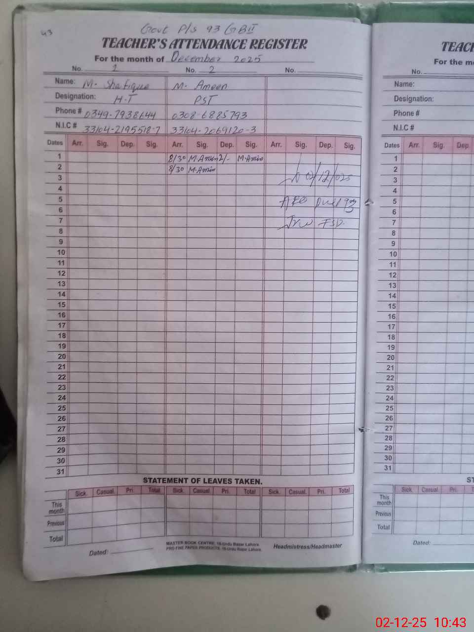 | Name: MU**** SH**** Designation: (School Headmaster's/Headmistress's) PST Phone/Cell Number: 03**** |