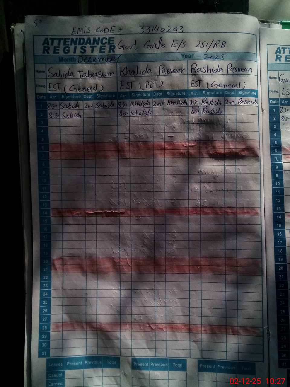 | CNIC | Full Name | Designation | R/C | Absence During Last Calender Month |