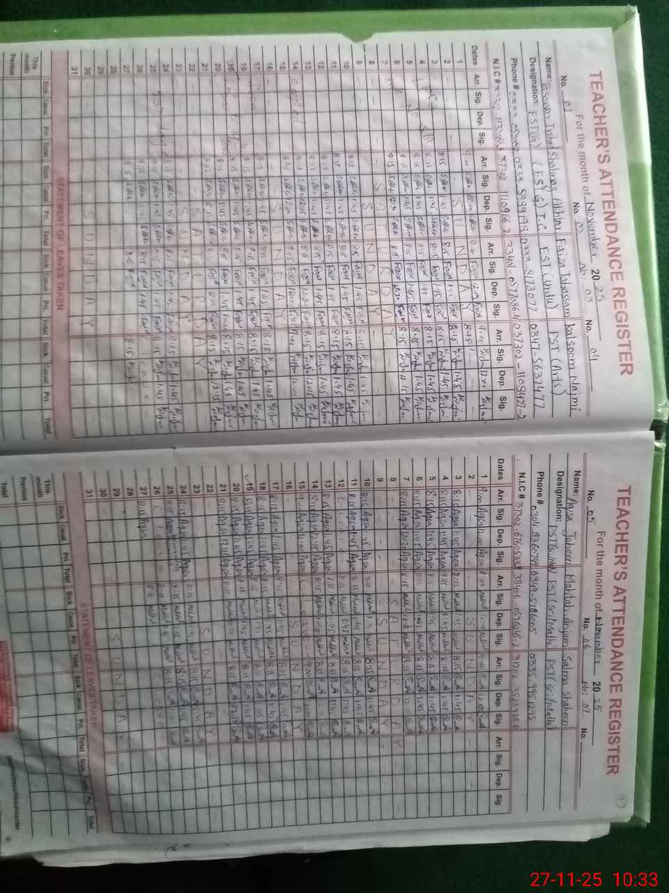 | CNIC | Full Name | Designation | R/C | Absence During Last Calender Month |
