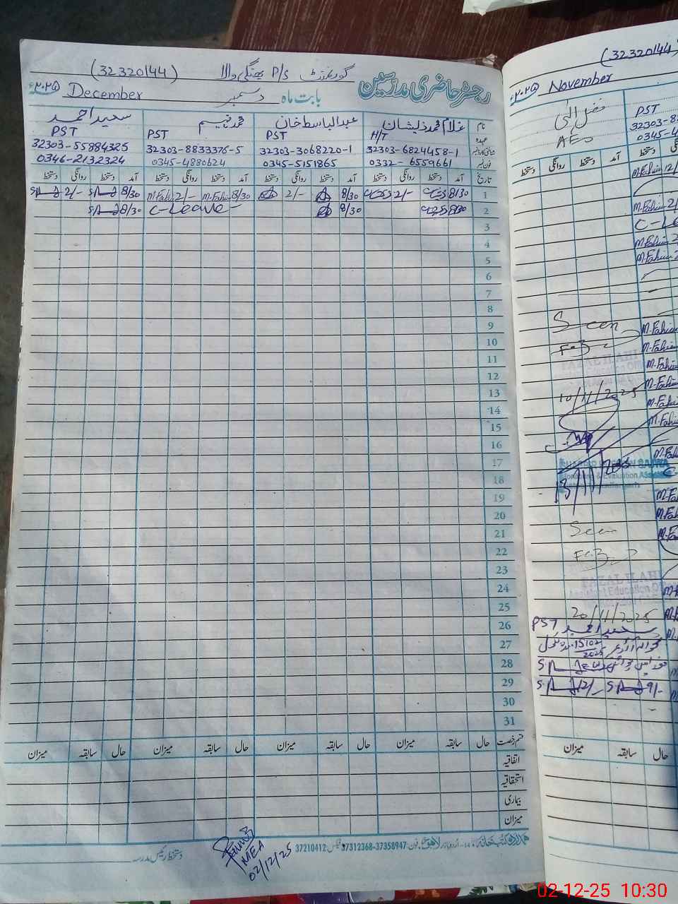 | CNIC | Full Name | Designation | R/C | Absence During Last Calender Month |