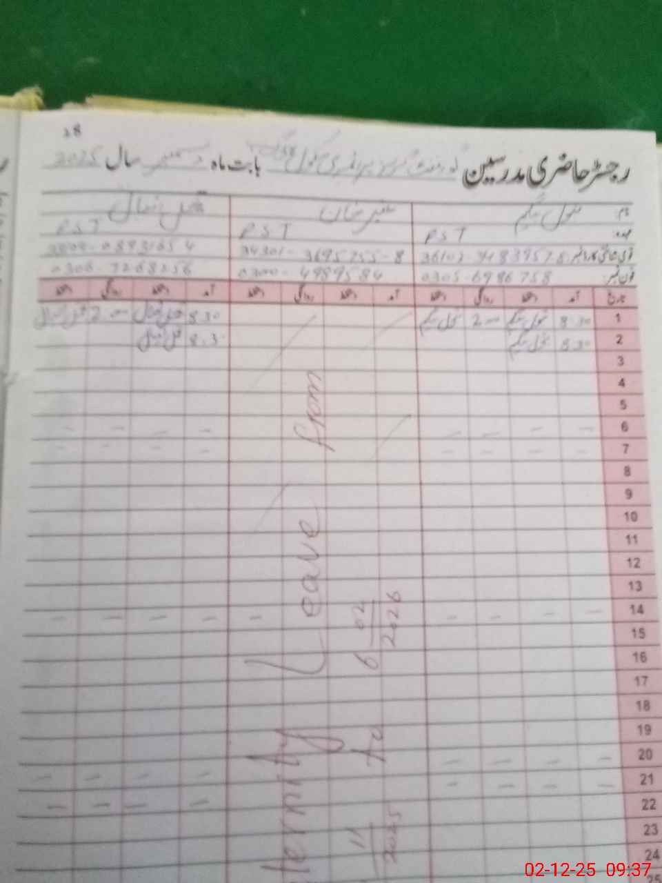 | 34**** | Um**** Kh**** | PST | Regular | 0 | 0 | 0 | 0 | 0 | 0 | 0 | 0 | 0 | Maternity |