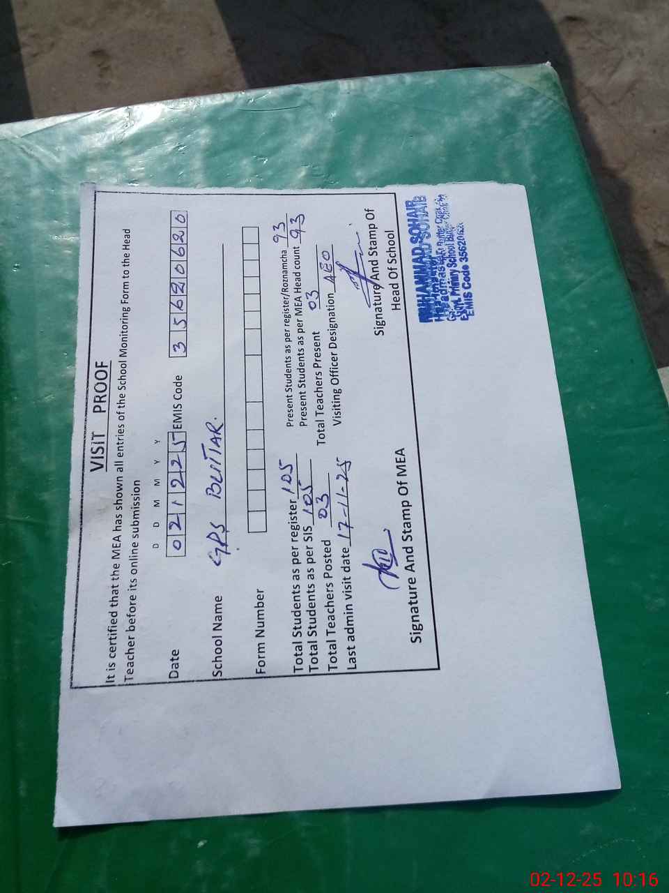 | EMIS Code: 35620620 | Name of School: GPS BUTTER NO. 23 | |||