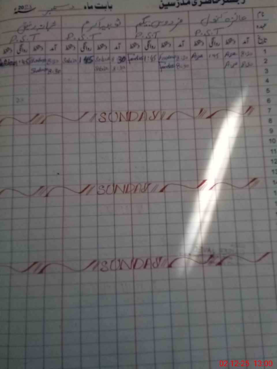 | CNIC | Full Name | Designation | R/C | Absence During Last Calender Month |