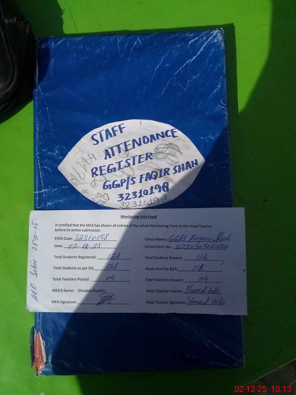 | EMIS Code: 32310198 | Name of School: GGPS FAQIR SHAH | |||